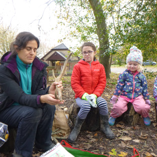Paulina then led us all in a wonderfully active game. We had two teams, the squirrels and the deer, and she had put out lots of golf balls which we pretended were acorns. The two teams then competed to see who could collect the most acorns for winter! There was a lot of running around and laughing. We also practised our numbers as we counted the buckets of ‘acorns’ at the end!